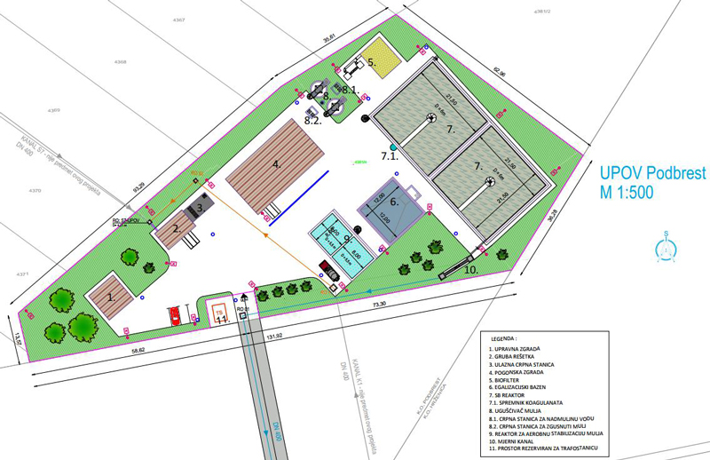 Slika: UPOV Podbrest (Izvor: Idejni projekt „Izgradnja uređaja za pročišćavanje otpadnih voda Podbrest s pristupnim putom i ispustom“ (AT Consult, Varaždin, listopad 2020.)